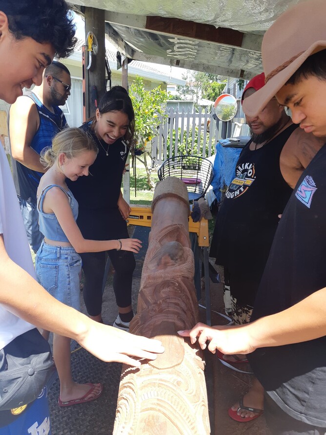 On a hot December day - which would be the first of many - five rangatahi with chisels in hand chipped away to turn bland, grey wood into something beautiful, guided by carver Henare Norris.