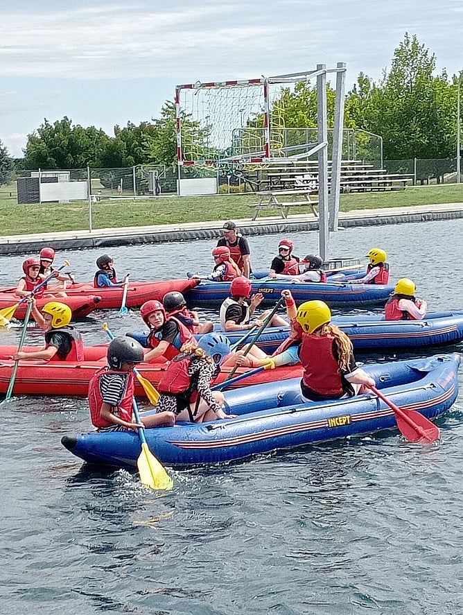 Rafting and kayaking on the outdoor canoe polo pool